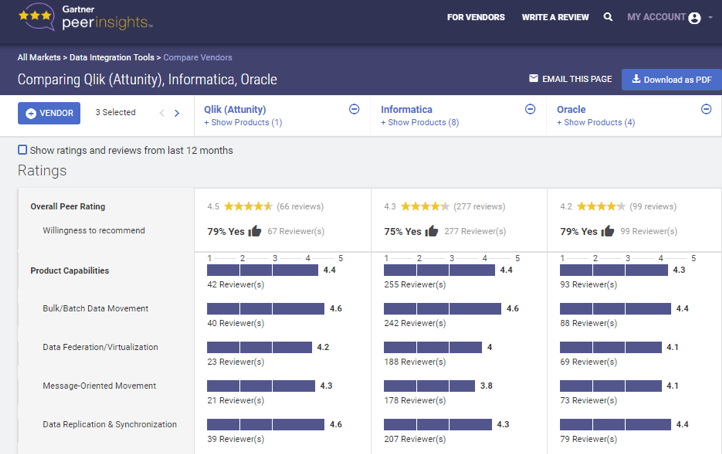 Hieronder geven we een samenvatting van ons recent geactualiseerde, onafhankelijke ETL & Data Integratie-onderzoek naar de softwareleverancier Qlik en zijn productportfolio (zoals Qlik Replicate, Qlik Compose en Attunity). Qlik ETL & Data Integratie scoort in onze onafhankelijke studie beter dan Microsoft maar behoorlijk slechter dan Informatica. Qlik is het sterkste in data connectiviteit en het minst sterk in masterdata management. Dit hebben we objectief kunnen vaststellen. De belangrijkste voor- en nadelen van Qlik Data Integration, binnen de context van ETL & Data Integratie, hebben we per thema (data integratie, Extract Transform Load, datareplicatie en datakwaliteit) voor je klaargezet. Ook benoemen we de sterke punten van de belangrijkste producten zoals Qlik Replicate, Qlik Compose en Attunity et cetera.